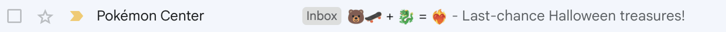 In the example above, would we have just combined everything into the subject line? What if you have an offer in your preview text, or need it to back up a clever subject line, like the Pokemon email below:
