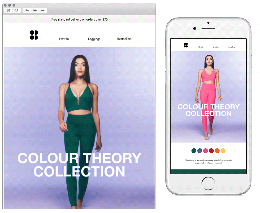 This email’s hero block is exactly that: a hero. The enticing flip-a-gram style animation showcases the product perfectly and combined with the clever connection of colours to moods, it really is ticking all the audience-centric boxes. The secondary content also has us *chef’s kiss*-ing, with each image flowing from the next in an extremely pleasing way. Because email flow is to us what yoga flow is to Sweaty Betty.