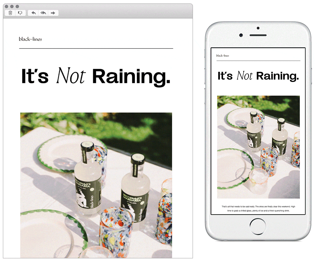 There’s no ignoring the UK’s dire wet weather this month; everyone’s had a moan at least once. With that in mind, this email’s subject line and headline is the perfect partnership. Timely references to the weather within email marketing isn’t new, but this effort from Black Lines really stood out. The copy is minimal but appealing, which works well as their gorgeous imagery says so much on its own - we particularly love the margarita salt smiley face 🙂