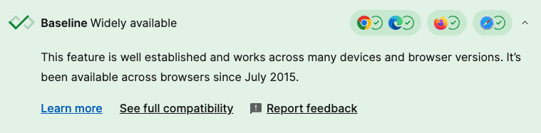The resources we use to establish if a feature has Baseline support and to see if we should start building with it include