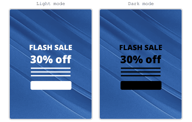 When text is placed over a background image, dark mode may invert the text colour but leave the image as is. Depending on the design, this could make the text illegible against the background.