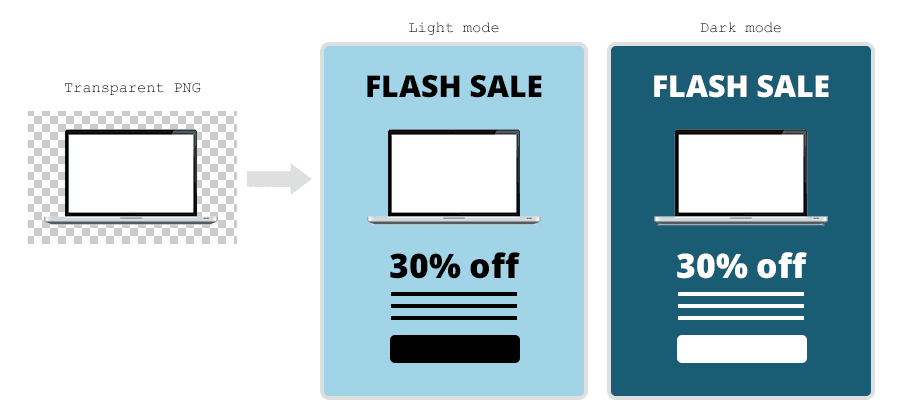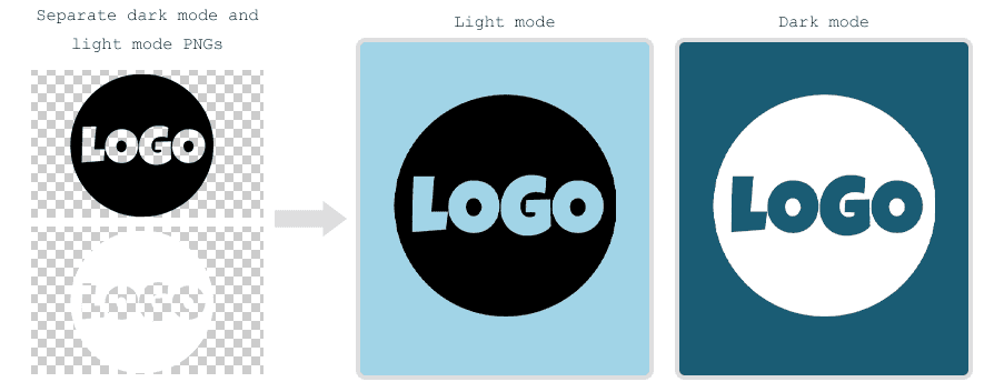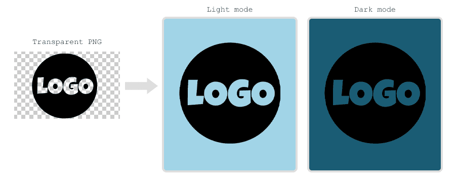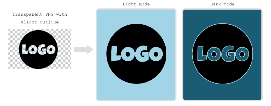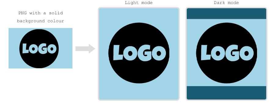 We often use transparent PNGs for logos and icons, which allow the background colour to show through. However, in Dark Mode, the background colour is likely to change while the image stays the same - potentially making the logo hard to see or even completely invisible. There are a couple of ways around this.