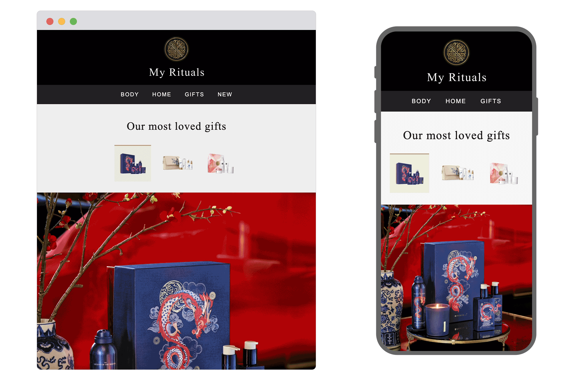 It’s all about the interactive element in the hero of this email from Rituals. Select from three options and witness the content of the email change completely! We especially like the way the CTA also shifts to complement the copy for each differing block, making it more interesting and therefore, the reader more likely to click through.