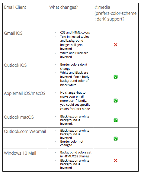 In recent months a new challenge has come up for email designers and developers - Dark mode - email clients changing your beautiful email design! We have put together a table full of handy information on all the (current) email clients that have implemented dark mode and also some quick tips on how to better design your emails so they still look great.