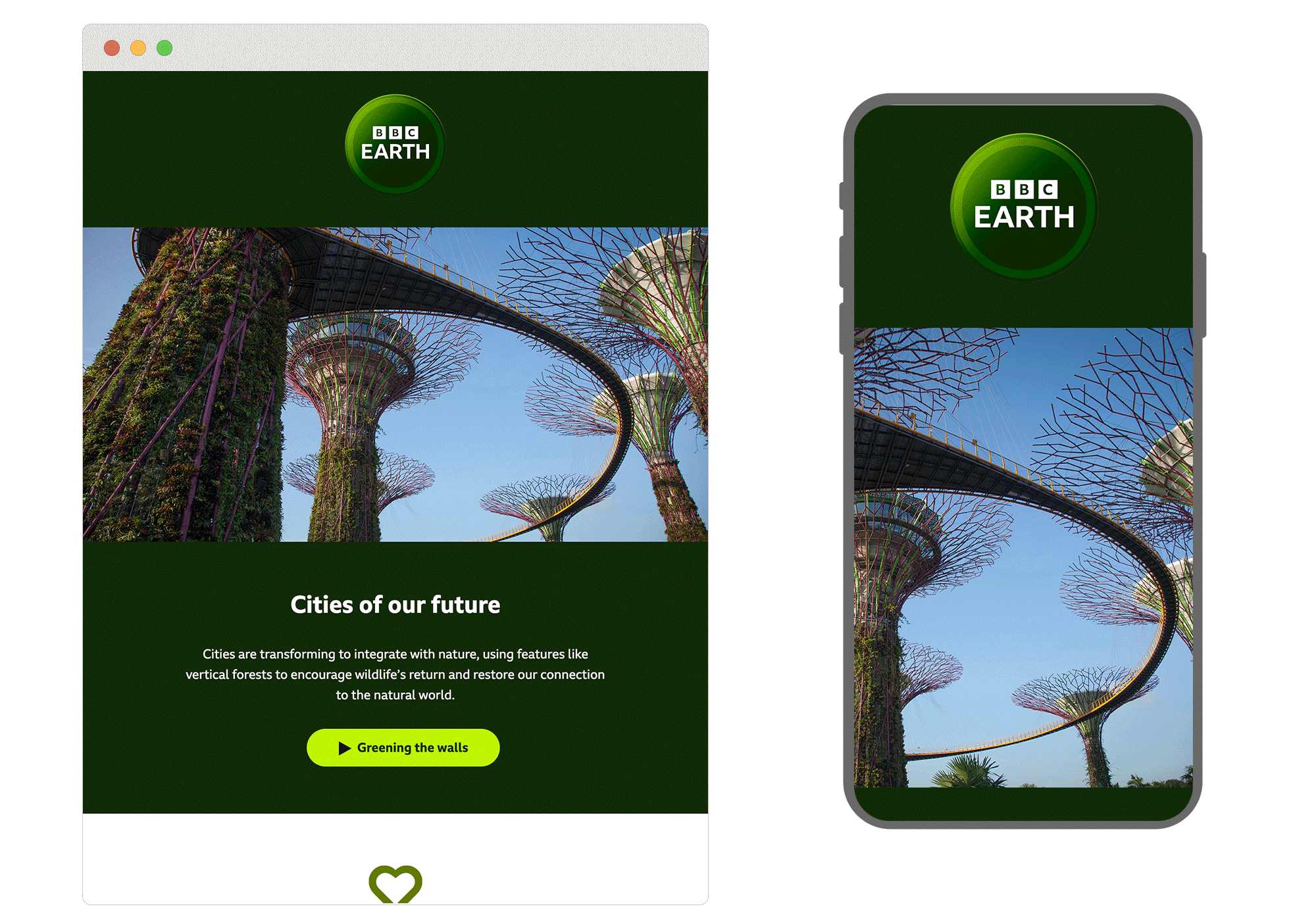 This BBC Earth email offers a welcomed balance of highlighting environmental problems alongside hope for positive change. The hero imagery of a known landmark does an excellent job of creating intrigue and curiosity to further explore the email without giving away the whole story. Unlike the other emails on this list, there is no specific call out for Earth Day itself which feels intentional given that for BBC Earth, every day is Earth Day!