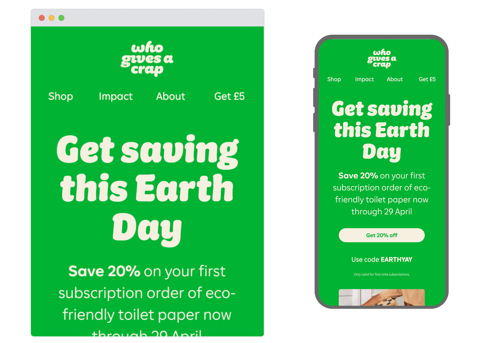 We’ve collated 5 of our favourite Earth Day email examples that landed in our inboxes last week and will be deep-diving into their inspiring and attention-grabbing design below.