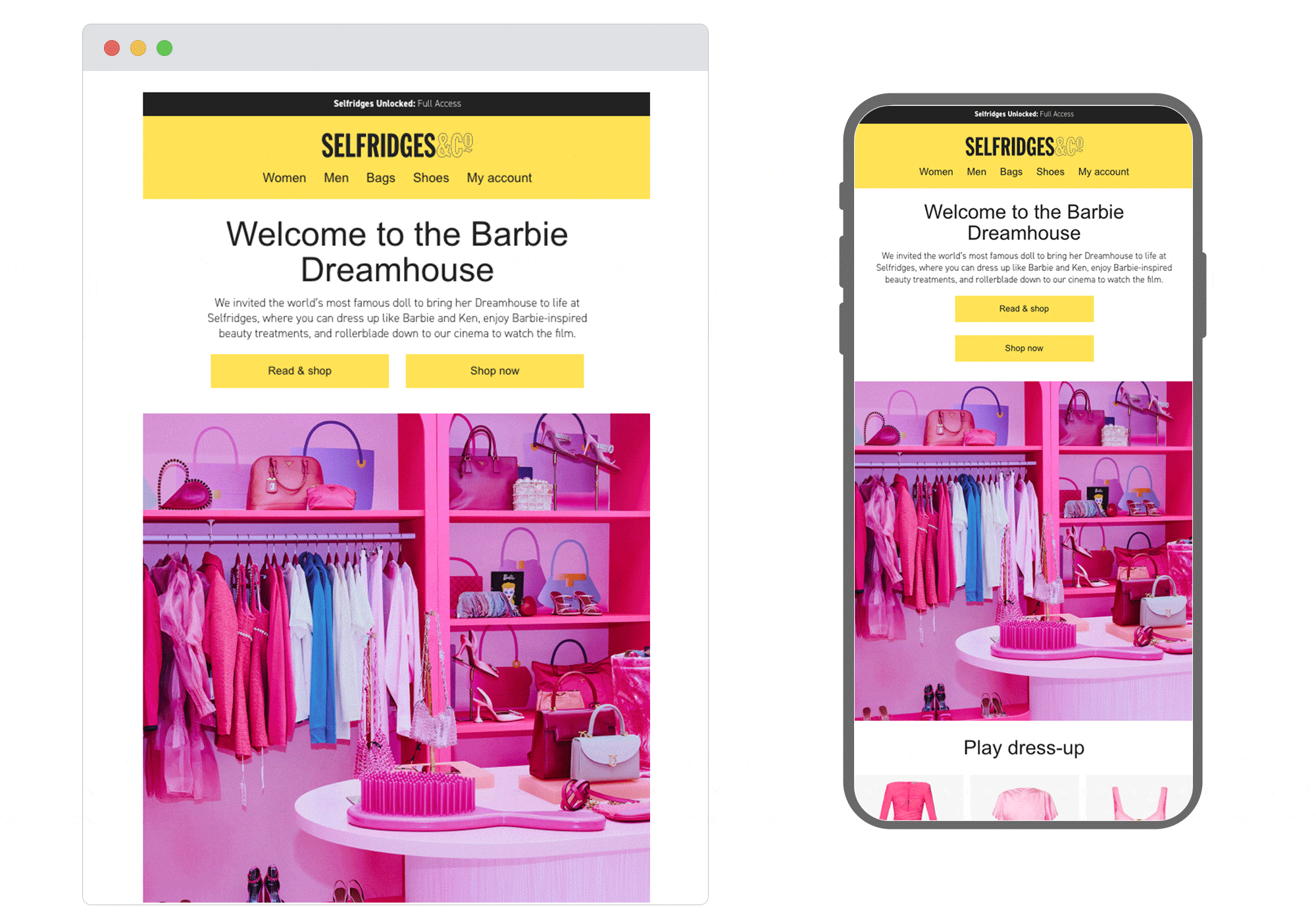 Selfridges have joined in the hype by fashioning a Barbie’s Dreamhouse experience in an email. It lists a substantial number of departments the reader can shop in to fulfill their Barbie fantasy, plus they’re meeting varying needs by inviting customers to engage either online or instore. They’ve also complemented the email, website and store experience with some fun Instagram posts. A great example of being top of the cross-channel marketing game, much like the movie’s own mega marketing team .