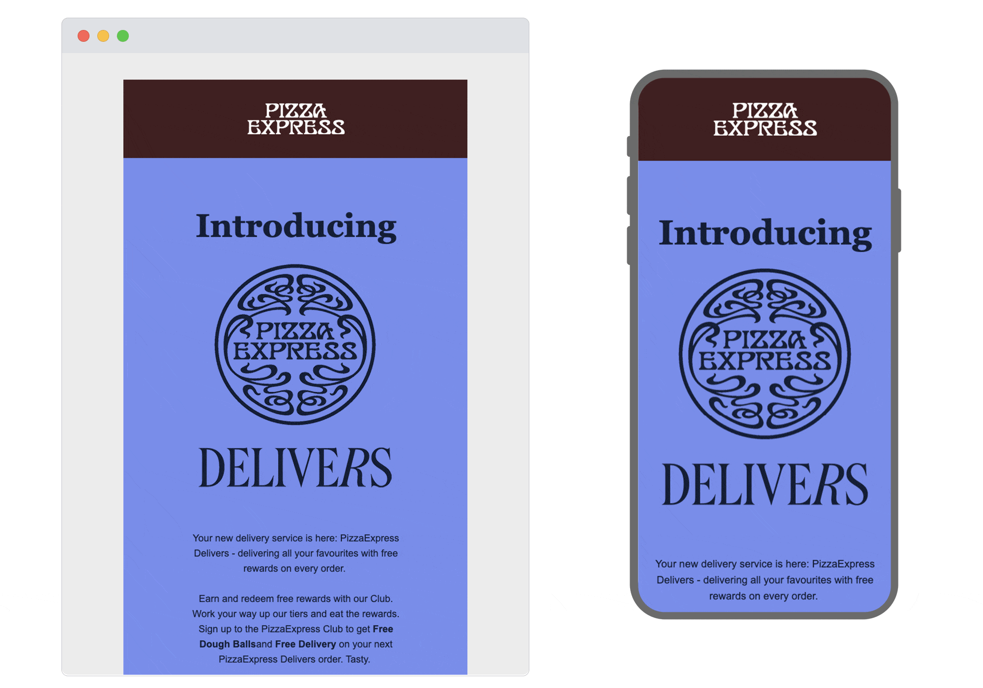 One of our lovely clients! PizzaExpress launched their new delivery service, so they wanted a dynamic email to announce it. And we think - just like them - we’ve delivered. Some great work from our designers on the animation in the hero, which works to draw the reader in as soon as the email is opened. We're big fans of animation like this; eye-catching but simple, not taking attention away from the content and copy.