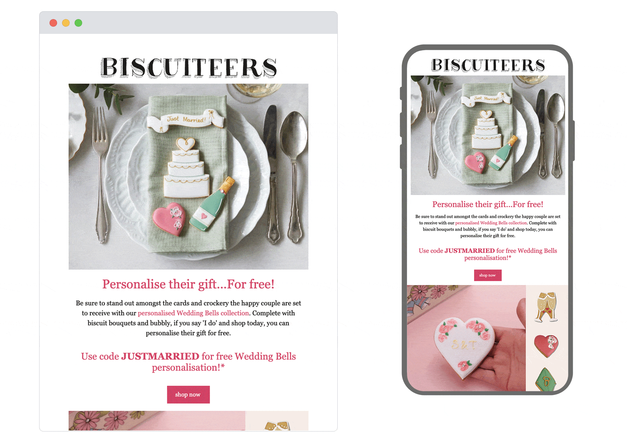 With wedding season in full swing, Biscuiteers have chosen the perfect time to grace our inboxes with this topical and beautifully designed email. The mix and balance of their content is always great and this is no exception; with offers, merchandise and engaging how-to's, as well as the cute GIF which showcases their products but also keeps the reader scrolling. We also love the ‘hand-drawn’ social icons in the footer, giving the email a nice personal touch to sign off with.