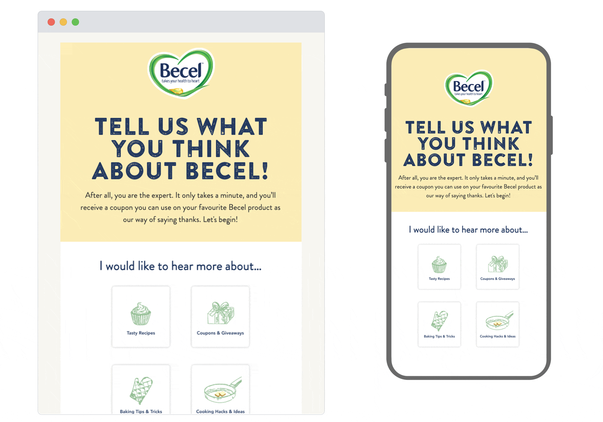 Here we have a preferences/data collection email done well. The on-brand design includes plenty of white space, clear information and sketch-like images, so it’s easy to digest and holds the reader’s attention. Becel show that they value their audience by offering a coupon and even when you click through to the data capture landing page, the user experience is simple and shows consistency with the email.