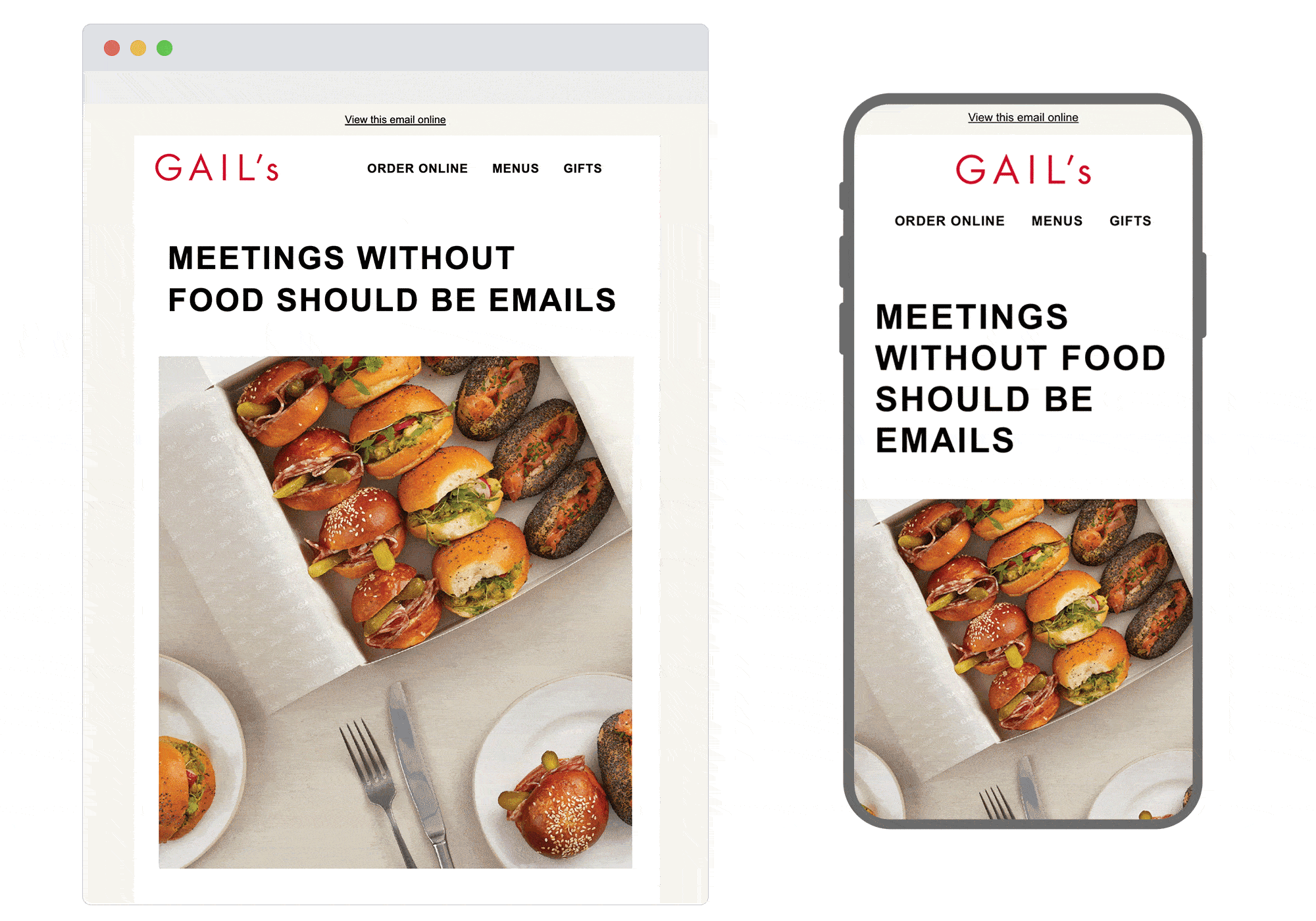 Gail’s knows their B2B audience. The person who skims marketing emails in their work inbox is usually the person in charge of catering arrangements for meetings, after all. And this email’s copy speaks to them clearly and humorously, starting with its strong headline. The alliteration in the body copy is clever but silly (yes to silly!), and we like the not-so-subtle connection of business success to good food.