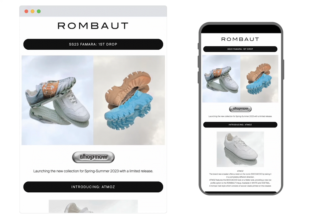 Now we love animation, but too much as you scroll down an email can be overwhelming and confusing for the eye. So high-fives all round for Rombaut, a brand that’s managed to utilise the feature without this happening. The combination of flip-through animation with a clever use of negative space results in a clean design that showcases their new collection nicely.