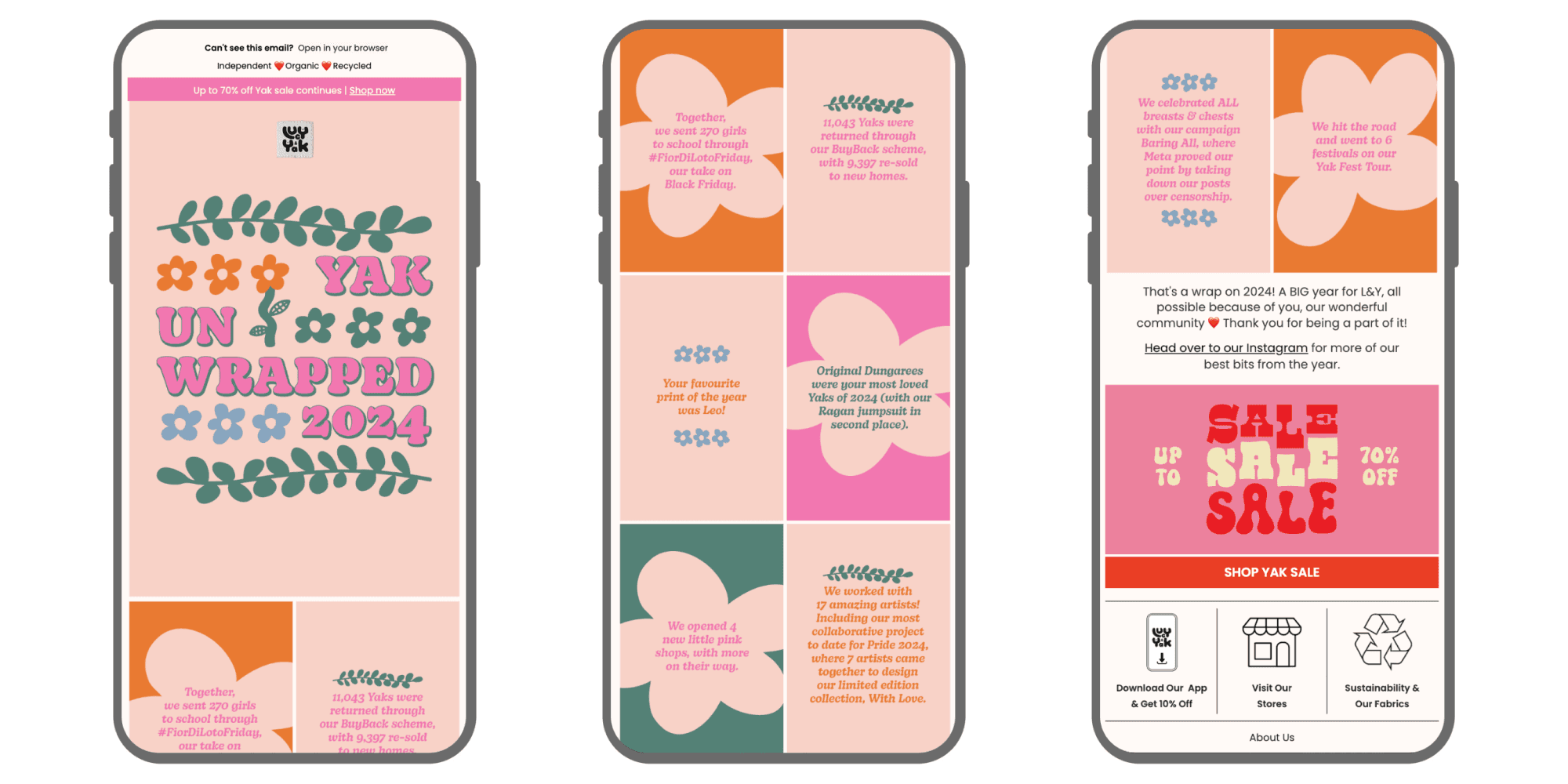 Sweaty Betty is another great example, highlighting initiatives that support inclusivity, female empowerment and promoting an active lifestyle. And Lucy & Yak struck a balance between featuring their social enterprise achievements alongside stats that show most-loved products and their own business wins.