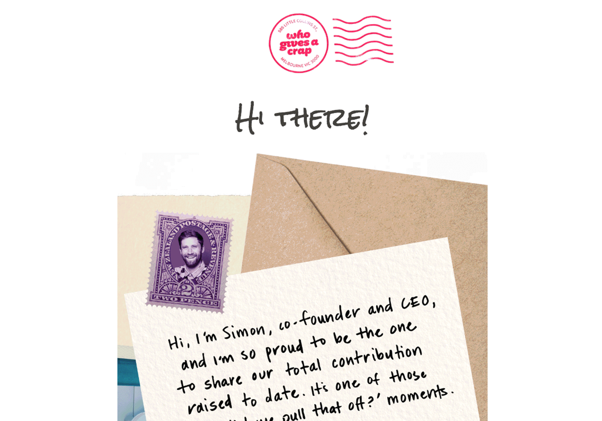 The magic of this email lies in how it contains both Who Gives A Crap’s signature tone as well as incredible, tangible results. Throughout, they reel off figures like 845,408 lives impacted and £9,825,422 raised, proving they can keep it fun because they’re genuinely doing good – and making the charm of a CTA like “Holy cow! Tell me more.” feel completely justified. The hand-scribbled fonts, postage stamps, and heartfelt letter from co-founder Simon instantly create a sense of warmth and gratitude. We also loved the way this email shines a spotlight on their charity partners, giving a face to the projects supported and showing exactly where the money is going.