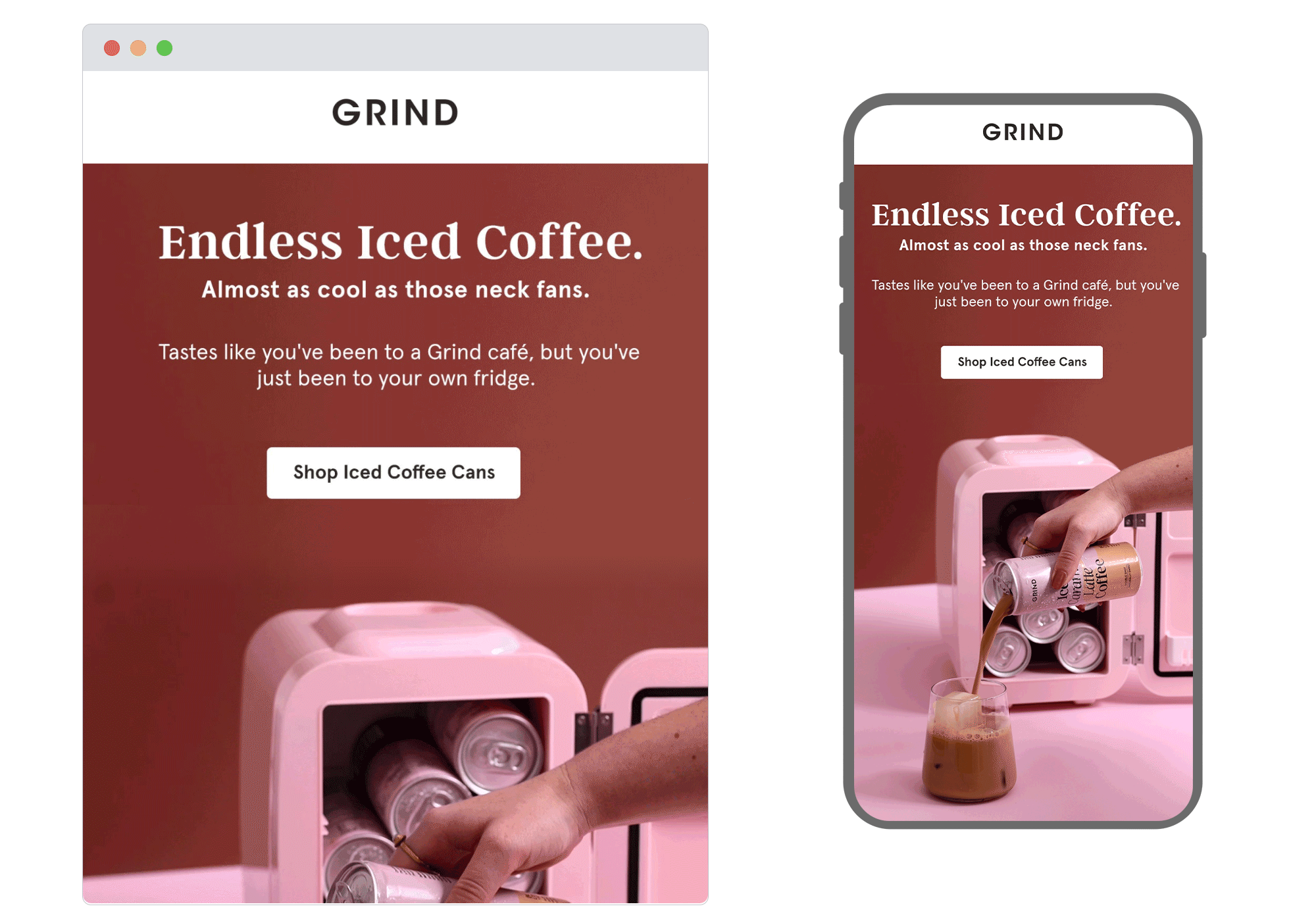In line with our discussing-the-weather obsession in the UK, at ActionRocket we love a weather-reactive email. So this single-focus response to the heatwave in the UK is a winner. As always Grind’s witty copy showcases their brand personality, as does the gif and colour palette - even down to the nail varnish. Ice cool.