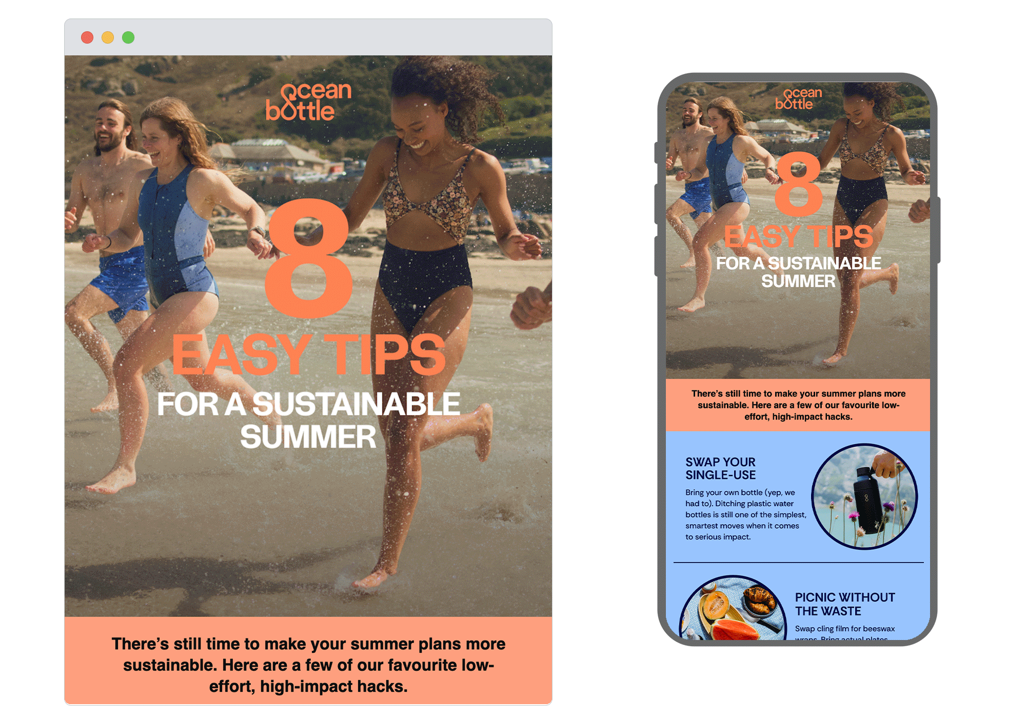 Ocean Bottle consistently deliver trustworthy, relatable content on sustainability, and this email doesn’t disappoint. It’s topical to summer with a fresh colour palette to suit, and its bold yet simple design works hard to ensure the important messaging stands out.