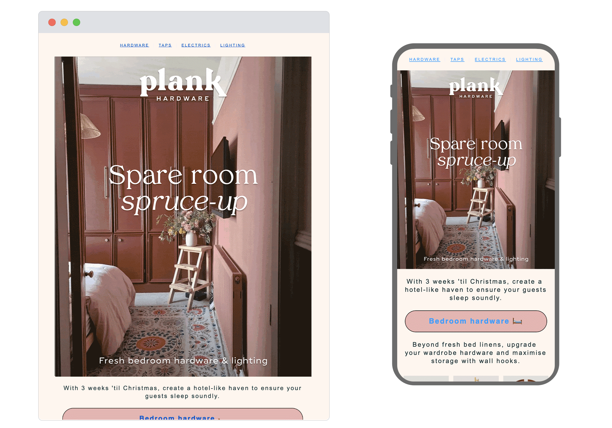 This email by Plank Hardware is a perfect example of blending festive charm with a message of practicality. Highlighting the need for holiday-ready homes, it gently nudges readers toward preparing for festive visitors in a visually stunning way. With carefully chosen imagery and unique messaging, it’s an ideal campaign for this time of year.