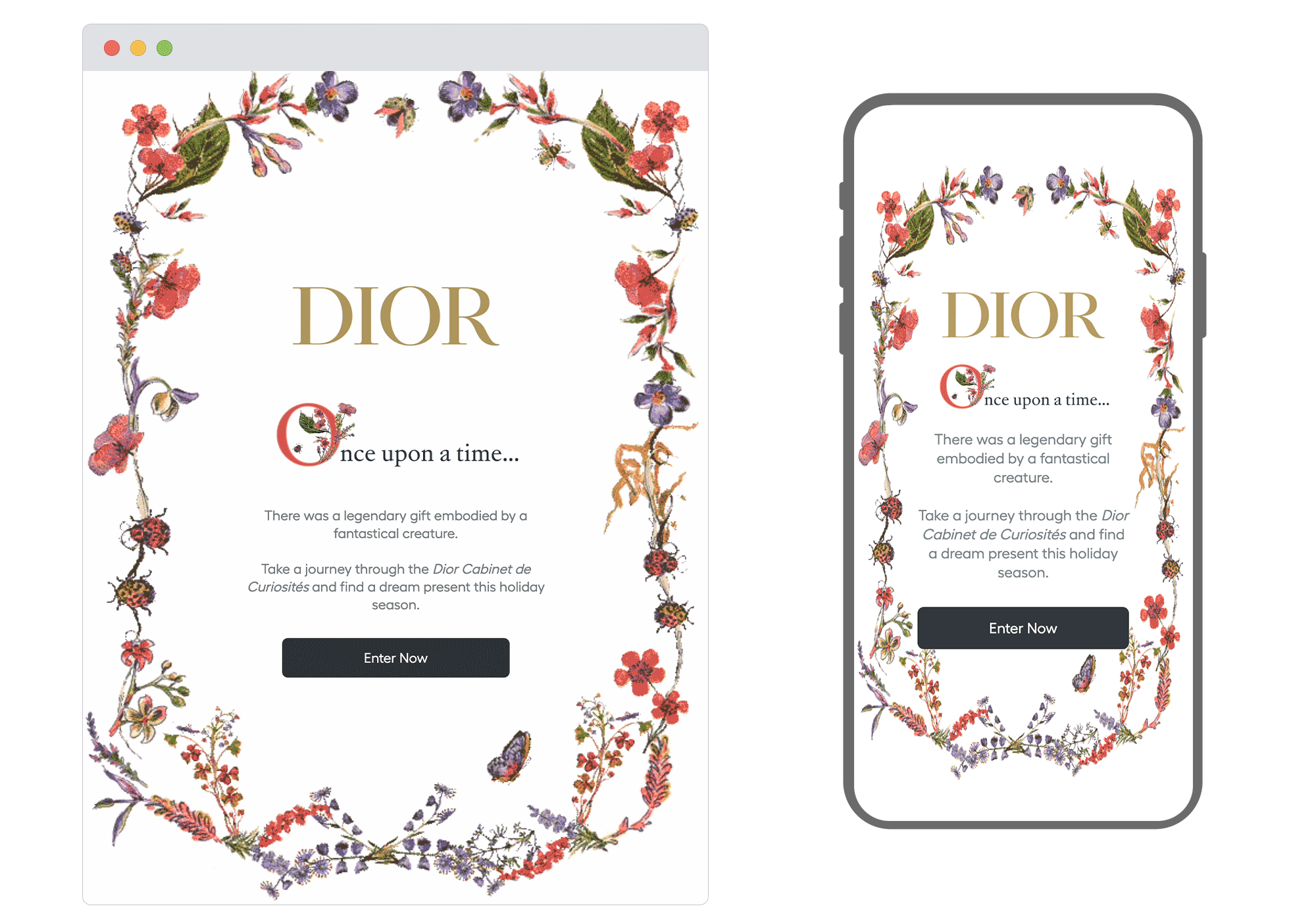 This email from Dior is nothing short of luxurious. It delivers an immersive experience through stunning animation and interactive elements. The “Cabinet de Curiosités” theme draws readers into a magical world, showcasing their products as dream gifts for the season. It’s an elegant blend of visuals and engagement.