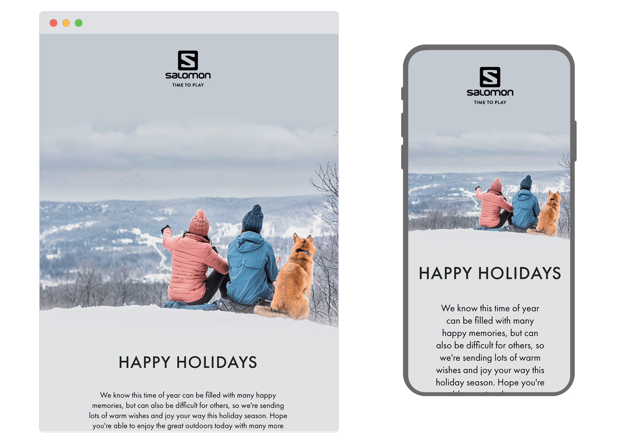 Rather than promoting products, Salomon takes a heartfelt approach with this email. Wishing its audience a joyful holiday season, the brand emphasises warmth and connection. This simple yet sincere message, paired with a cosy winter image, is a refreshing reminder of the season’s spirit.