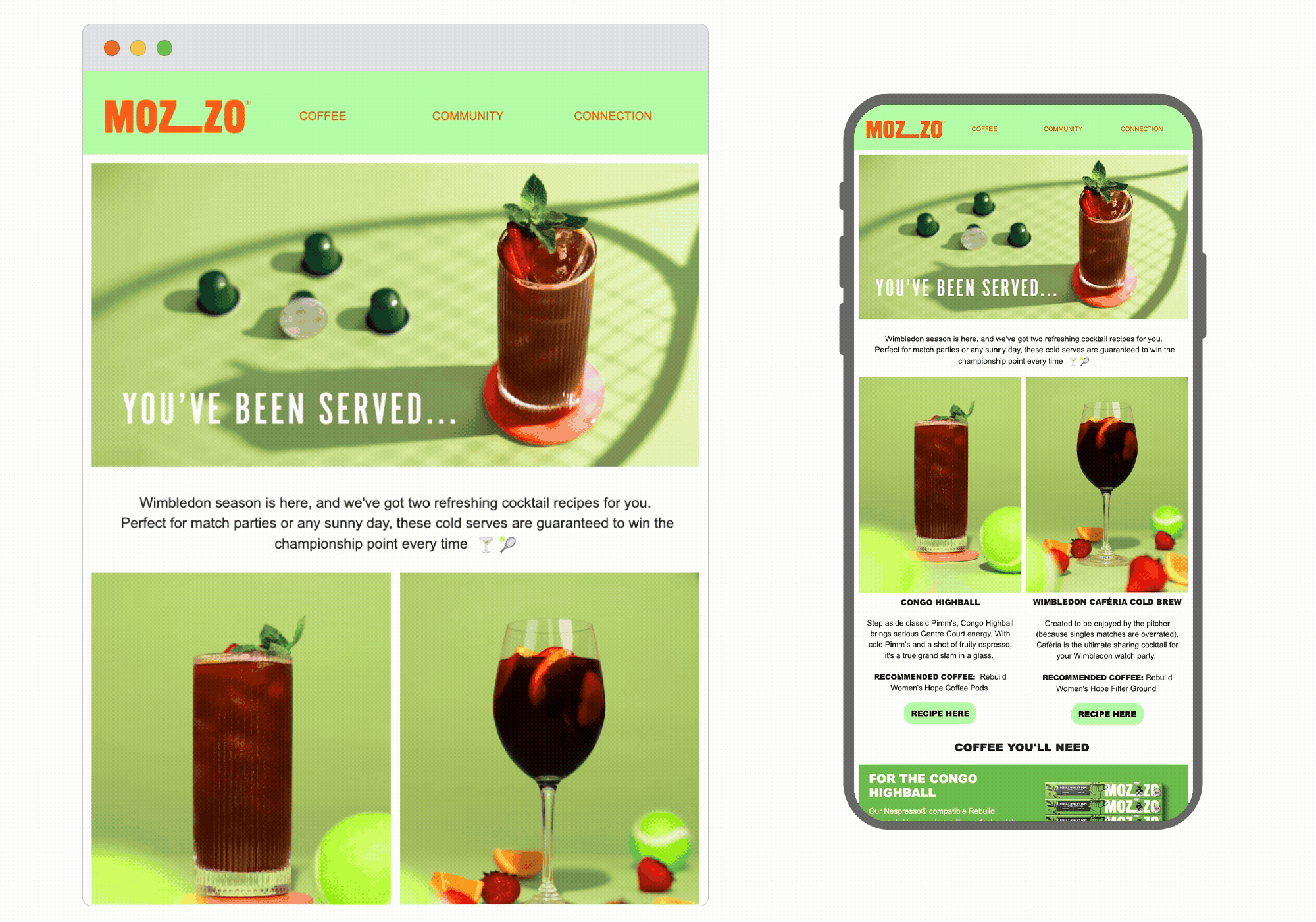 With the world-famous tournament in full swing throughout July, why wouldn’t brands jump on it as a marketing opportunity? This email scores high by aligning their coffee recipes to the theme, with delightfully topical imagery and great copy scattered with ace puns we’d be proud of. Advantage: Mozzo Coffee.