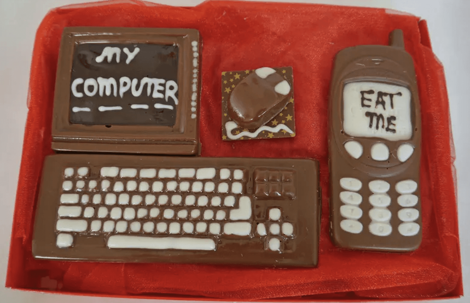Opt for a delicious home-made touch with this hand-piped chocolate computer and phone set. Gift to someone who will appreciate the details, or just keep it for yourself and enjoy. 😉😋
